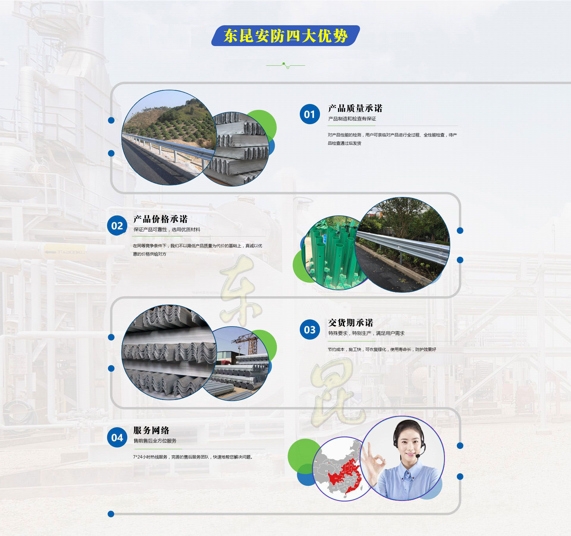 河北東昆金屬制造有限公司是一家專注于交通設(shè)施防護(hù)產(chǎn)品領(lǐng)域,擁有較強(qiáng)的生產(chǎn)、銷售、安裝三位一體的綜合業(yè)務(wù)能力的公司,我們下設(shè)生產(chǎn)部、銷售部、財(cái)務(wù)部、供應(yīng)部、技術(shù)質(zhì)檢部、業(yè)務(wù)部、辦公室七個(gè)部室;沖壓、制管、成型、噴塑、鍍鋅等五個(gè)生產(chǎn)車間;二個(gè)波形護(hù)欄板施工安裝工程隊(duì)。通過整合團(tuán)隊(duì)專業(yè)的市場(chǎng)營(yíng)銷理念與產(chǎn)品技術(shù)為您提供優(yōu)質(zhì)的服務(wù)。